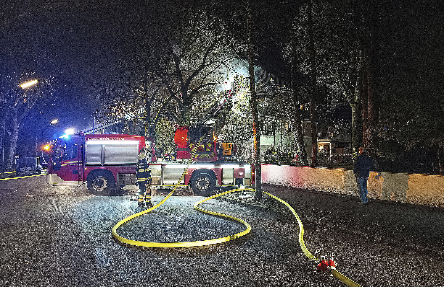 In der Nacht von Sonntag auf Montag ist es in der Diefenbachstraße (Solln) zu einem Dachstuhlbrand in einem Mehrparteienhaus gekommen. Die Feuerwehr München war über mehrere Stunden im Einsatz.